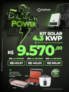 A maior empresa de energia solar do Brasil, a EcoPower Eficiência Energética, acompanha o cenário político e já pensa estratégias e propostas comerciais a seus clientes. O Meu Solar Popular e a Black Power, viabilizam a aquisição do sistema de energia solar. Além dessas ofertas, a empresa, oferece financiamento próprio e prazos estendidos, portanto, facilidade para projetos residenciais, empresariais, industriais e rurais.