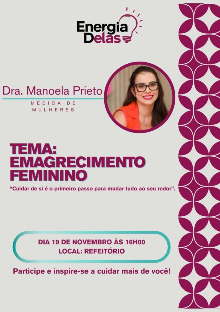 O Comitê Energia Delas, da EcoPower Eficiência Energética, promoveu quarta (19 de novembro), uma palestra com a Drª Manoela Prieto, com o tema: “Emagrecimento Feminino – cuidar de si é o primeiro passo para mudar tudo ao seu redor”. Assim, a palestra foi focada em saúde, bem estar e qualidade de vida da mulher. Drª […]